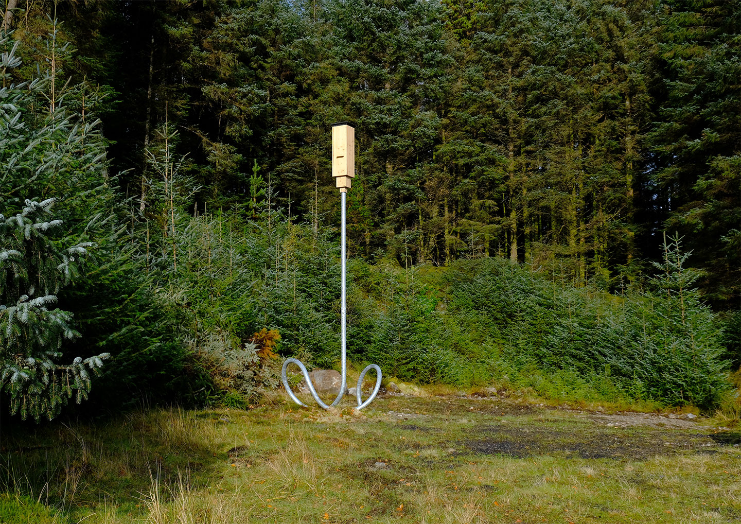 Laura has created a large scale public sculpture, Teach Ialtóg, (Bat house), which functions primarily as a bat shelter. The sculpture is constructed from galvanised steel and reclaimed timber, from trees that had already been felled in Wild Nephin National park. The steel has been coiled to resemble root structures, such as the mycorrhizal network.